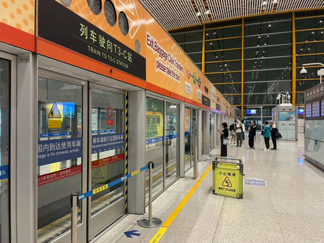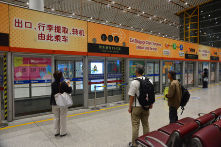 以前研修で滞在した成都国際空港と同じく、到着口からモノレールで荷物受取場所へGO!