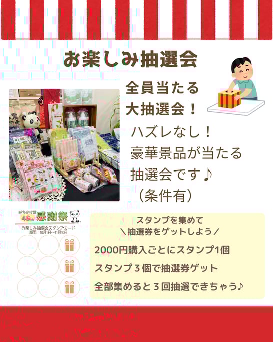 スタンプ3個で、1回抽選できます。