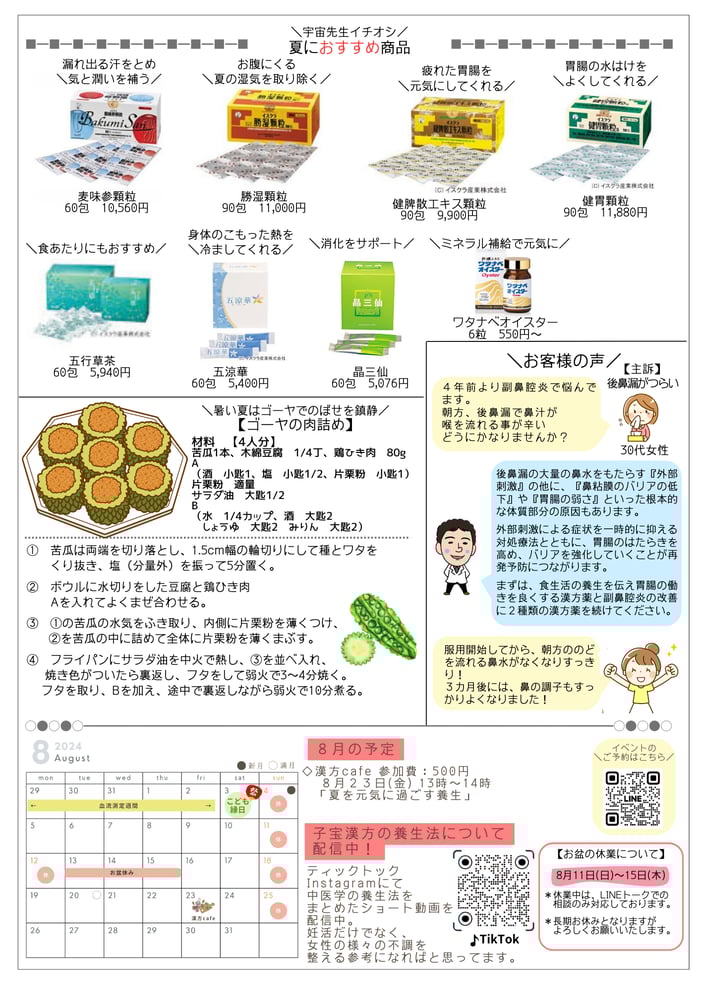 みちかけ新聞 · 2024/08/03 みちかけ新聞 2024年8月号 No.81 みちかけ新聞バックナンバー 子宝cafe みちかけ漢方cafe 各種イベント情報は、インスタグラムで更新中! tagPlaceholderカテゴリ: みちかけ新聞 コメントをお書きください コメント: 0